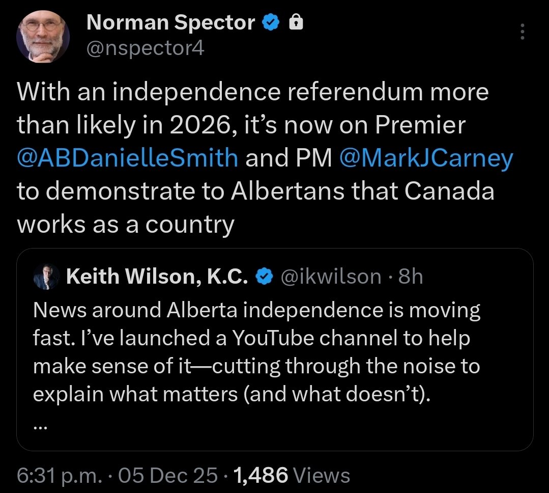"With an independence referendum more than likely in 2026, it’s now on Premier @ABDanielleSmith and PM @MarkJCarney to demonstrate to Albertans that Canada works as a country"